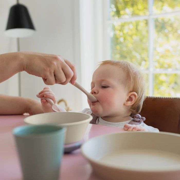 Le jeu de cuillères de BIBS comprend une petite cuillère pour l’enfant et une autre cuillère avec le manche plus long pour les parents. Le jeu de cuillères favorise les rapports sociaux des jeunes enfants lors des repas en commun. Un repas en famille ne sert pas seulement à découvrir de nouveaux aliments. Ses simples moments passés en famille, autour d’un repas, permettent à votre jeune enfant d’apprendre à manger, mais aussi de se sociabiliser.Entièrement composé de matériau de qualité alimentaire.Avec un manche ergonomique et antidérapant, pour une meilleure prise en main.Aide l’enfant à développer sa motricité fine, et l’encourage à manger seul.Cuillère pour bébé en un matériau souple, et petite, afin de ne pas blesser les gencives douloureuses de votre bébé et de protéger ses dents en développement.Passe au lave-vaisselle.Conçu et fabriqué au Danemark.