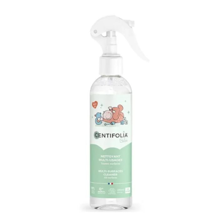 Offrez à votre bébé un environnement propre et sûr avec le nettoyant multi-usages CENTIFOLIA. Conçu pour nettoyer toutes les surfaces de la maison, du sol au plafond, ce nettoyant est également idéal pour les affaires de bébé : table à langer, jouets, chaise haute… Sa formule douce et naturelle, sans parfum, sans huile essentielle, sans colorant et sans azurant optique, respecte la peau sensible de votre bébé et l’environnement. Le format spray pratique facilite l’application et assure une répartition uniforme du produit. Avec CENTIFOLIA, vous pouvez nettoyer en toute tranquillité, en sachant que vous utilisez un produit sûr et efficace pour votre bébé et votre famille.Un nettoyant multi-usages doux et naturel pour un environnement sainLe nettoyant multi-usages bébé CENTIFOLIA 250 ML est un véritable concentré de bienfaits pour votre foyer :Nettoie toutes les surfaces : Du sol au plafond, y compris les affaires de bébé.Formule douce et naturelle : Sans parfum, sans huile essentielle, sans colorant, sans azurant optique.Respecte la peau sensible de bébé : Pour une utilisation en toute sécurité.Format spray pratique : Pour une application facile et uniforme.Respectueux de l’environnement : Un choix écologique pour votre foyer.Marque de confiance : Centifolia est une marque reconnue pour ses produits naturels et biologiques.Conseils d’utilisationVaporisez le nettoyant sur la surface à nettoyer.Essuyez avec un chiffon propre et sec.Pour les jouets et les objets en contact avec bébé, rincez à l’eau claire après le nettoyage.Ne pas utiliser sur des surfaces sensibles comme le bois non traité ou le cuir.Conservez hors de portée des enfants.