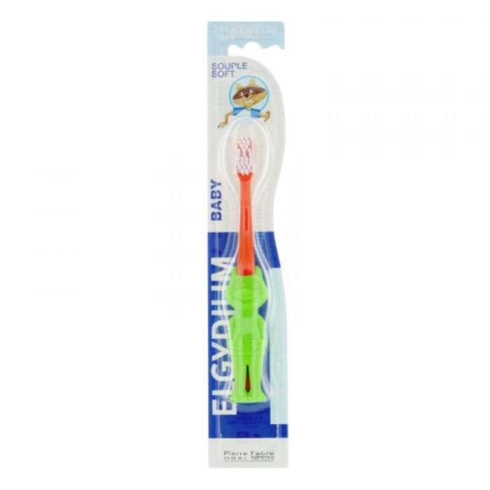 Destinée aux bébés et aux enfants jusqu’à 2, la brosse à dents bébé ELGYDIUM encourage l’apprentissage de l’hygiène buccale et laisse gencives et premières dents propres. Son manche ludique et sa tête pourvue de brins doux et arrondis facilitent l’apprentissage du brossage. Utilisée sans dentifrice jusqu’à ce que l’enfant soit en mesure de bien le recracher, la brosse à dents bébé n’en nécessite ensuite qu’une toute petite quantité dès l’éruption des premières dents (vers 6 mois). Elle est proposée en trois versions bicolores : rose/jaune, bleu/vert, vert/orange.Les bienfaits :• DOUCE la brosse à dent bébé est parfaite pour les gencives et les toutes premières dents des bébés. • HYGIÉNIQUE grâce à son protège-tête. • LUDIQUE et adaptée à la taille de la bouche des très jeunes enfants.Conseils d’utilisation:Il est recommandé de se brosser les dents après chaque repas, 2 à 3 fois par jour, pendant 2 minutes, avec la dose de dentifrice appropriée.