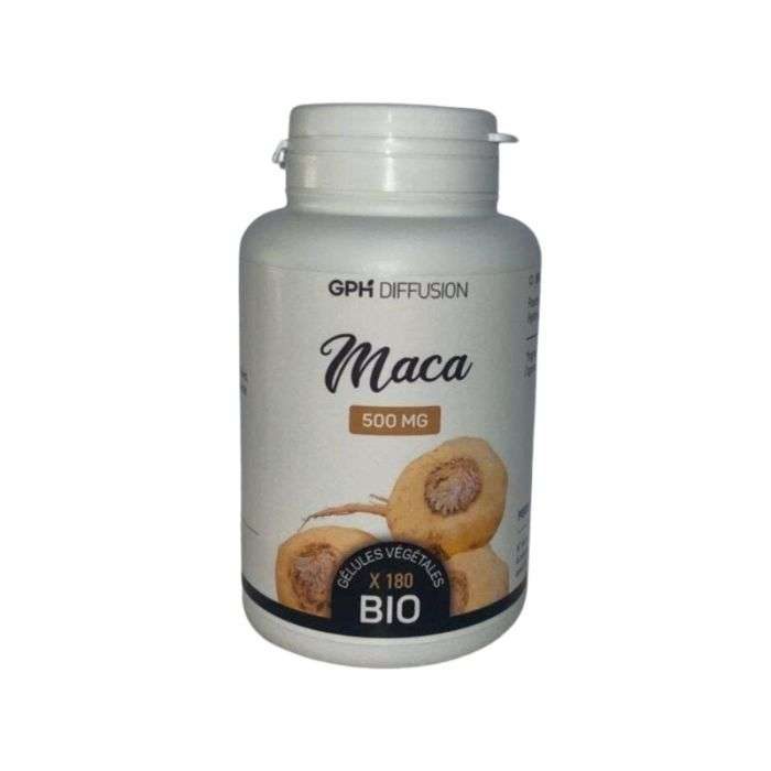 Maca bio (gélules végétales) de GPH Diffusion est un complément alimentaire à base de racine de maca qui présente une richesse nutritive exceptionnelle, équivalente à celle des céréales. La racine de maca détient des principes actifs fondamentaux pour l’organisme : agents nutritifs, sels minéraux, oligo-éléments, mais aussi acides gras et acides aminés. Forte de cette composition nutritionnelle hors du commun, la maca permet de lutter contre l’anémie et la fatigue et renforce ainsi l’organisme. La maca favorise également le bien-être psychologique en agissant sur le stress et l’anxiété.Conseils d’utilisation:Prendre 5 à 10 gélules par jour avec un grand verre d’eau au cours des repas et dans le cadre d’une alimentation équilibrée.