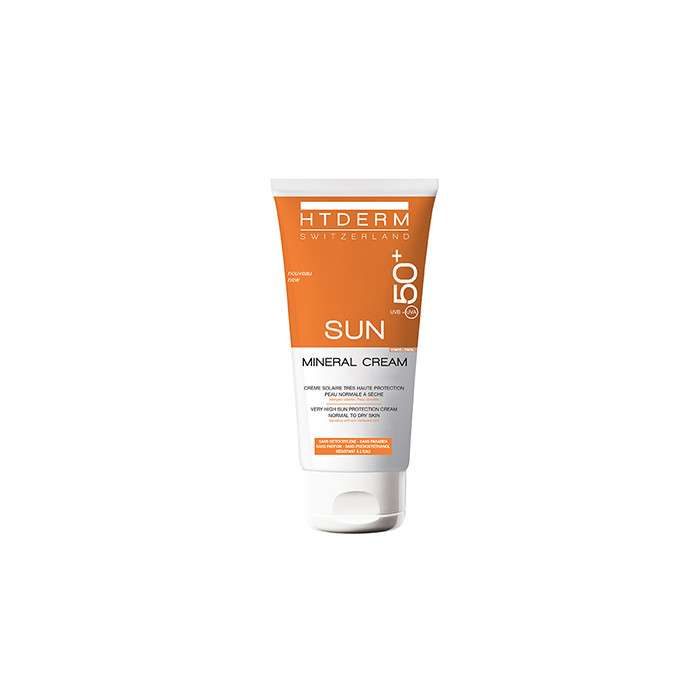 HTDERM Sun Mineral Tinted SPF 50+ 50ml l’association de filtres minéraux apporte une protection extrême contre les UV A et les UV B et une tolérance parfaite pour les peaux sensibles INDICATIONS: Crème solaire teintée protection extrême UTILISATIONS: Appliquer uniformément HT Derm Teinté sur la visage. Renouveler fréquemment l’application