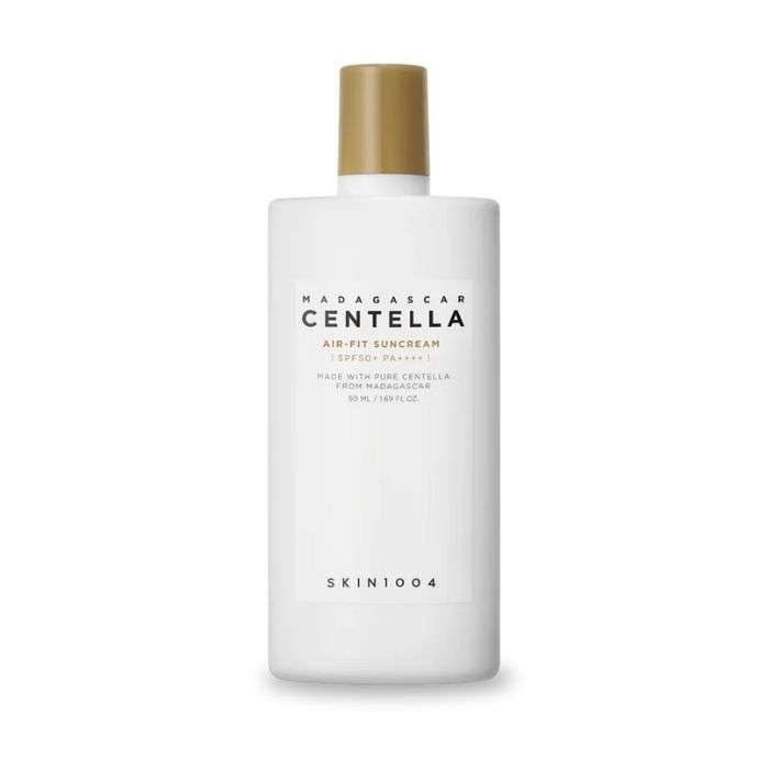 Une protection solaire efficace et respectueuse de la peauLa SKIN1004 Madagascar Centella Air-Fit Suncream Plus SPF50+ PA++++ est une crème solaire 100 % minérale, conçue pour protéger la peau des rayons UVA et UVB tout en offrant un soin apaisant et un effet tonifiant naturel. Grâce à sa formule légère et sans nanoparticules, elle convient parfaitement aux peaux sensibles et réactives.✔ Haute protection SPF50+ PA++++ contre les rayons UVA et UVB. ✔ Filtres minéraux non nanométriques pour une protection douce et efficace. ✔ Finition mate et effet tonifiant naturel pour un teint unifié. ✔ Enrichie en Centella Asiatica et Niacinamide pour apaiser et illuminer la peau. ✔ Formule « Reef Safe », sans ingrédients nocifs pour l’écosystème marin.Idéale pour une utilisation quotidienne, cette crème solaire offre une protection optimale sans alourdir la peau.Conseils d’utilisationAppliquez une quantité généreuse sur le visage et le cou, 30 minutes avant l’exposition au soleil.Massez délicatement pour une absorption uniforme.Renouvelez l’application toutes les 2 heures, ou après la baignade ou la transpiration.Utilisez-la comme dernière étape de votre routine de soin avant le maquillage.Composition : Water, Zinc Oxide, Titanium Dioxide, Butylene Glycol, Glycerin, Niacinamide, Centella Asiatica Extract, MadeWhite™, Caprylyl Glycol, Allantoin, Sodium Hyaluronate, 1,2-Hexanediol, Hydroxyacetophenone, Carbomer, Sodium Hydroxide.