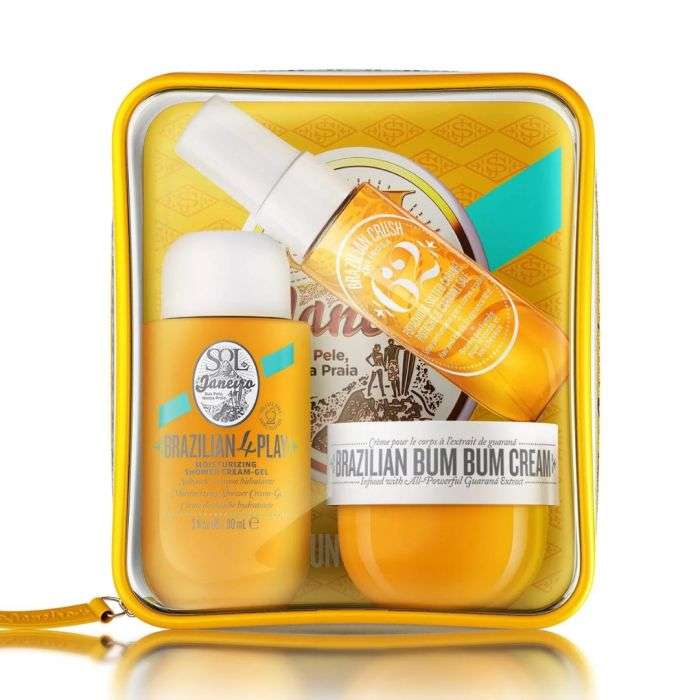 Parfait pour les superpositions somptueuses et les secrets de beauté brésiliens en déplacement, le pack contient: La crème brésilienne Bum Bum 50 ml: emblématique pour un lissage incroyable de la peau avec une touche de brillanceLe gel douche brésilien 4 Play90 ml: pour une peau propre et super douceLa brume parfumée 30ml: pour les cheveux et le corps brésilienne Crush Cheirosa ’62 pour une tête profondément irrésistible Le tout infusé de notes irrésistibles de pistache et de caramel salé.